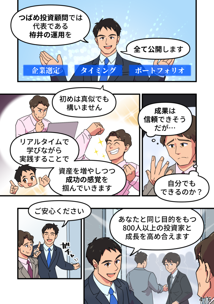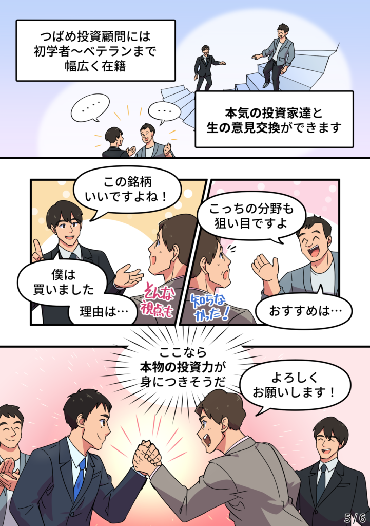 長期投資の王道?を、実践として基本から学ぶことができるところです。また、代表の栫井さんの(投資にとどまらない)誠実な姿勢が信頼できる点と思っています。