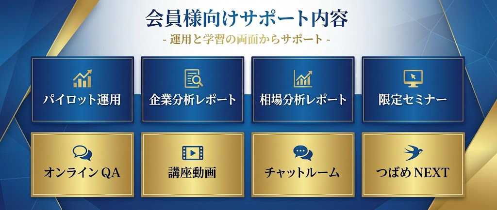 私自身が自らの資金を投じて行うパイロット運用は、その「学び」の核となります。私たちは、長期成長株への投資の「実践」を通じて、企業選定から売買タイミングの判断、ポートフォリオの構築まですべてのプロセスを公開しています。投資には、時に手痛い失敗が伴うこともありますが、それらを含めて全てを公開することで、失敗を致命的なものにせず、長期にわたって資産を増やしていく方法を身をもってご理解いただけます。あなたが自立するためには、パイロット運用の結果よりも、その過程をリアルタイムで見て、咀嚼し、「投資とはどういうものか」を身につけることが重要なのです。